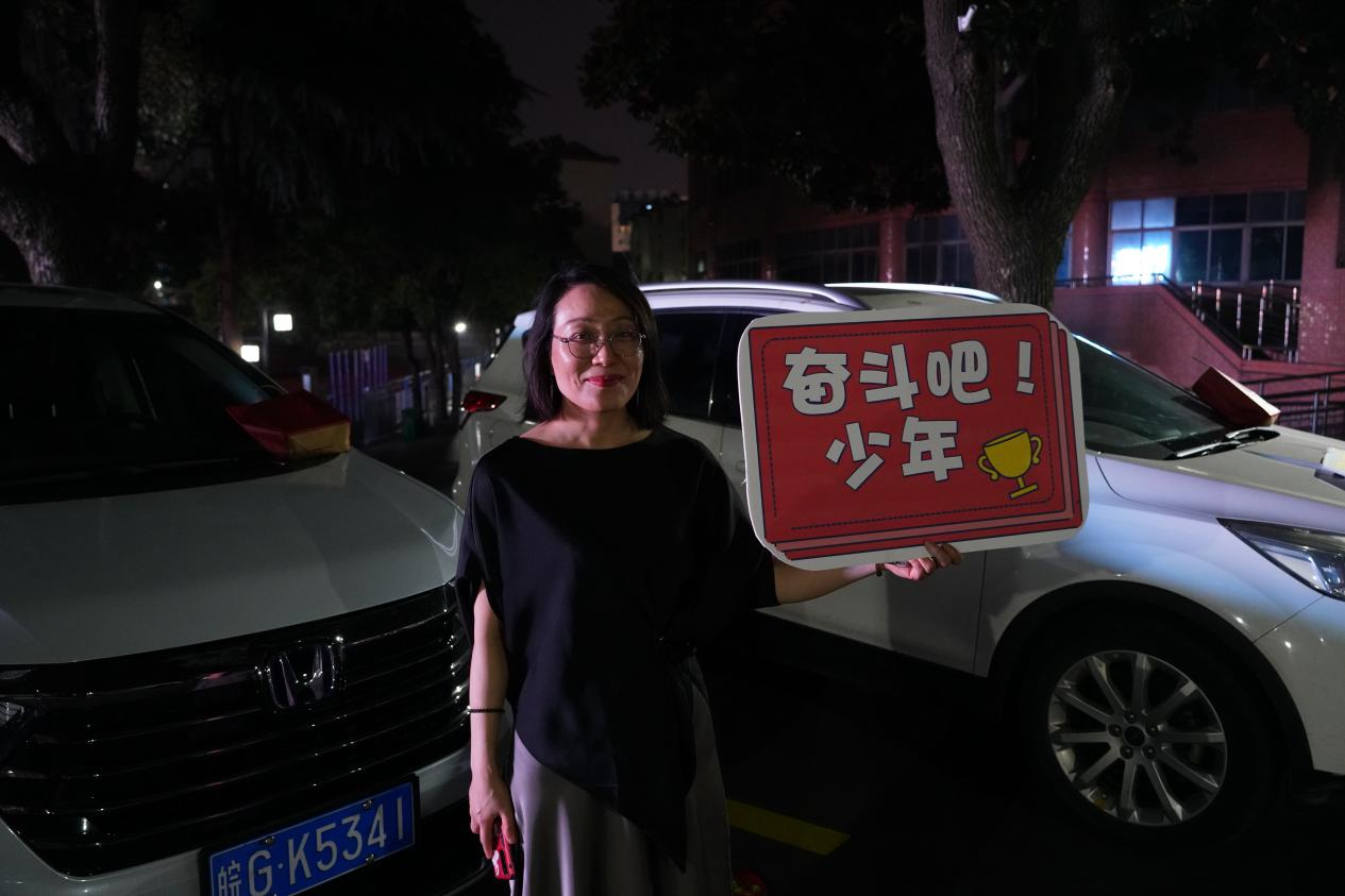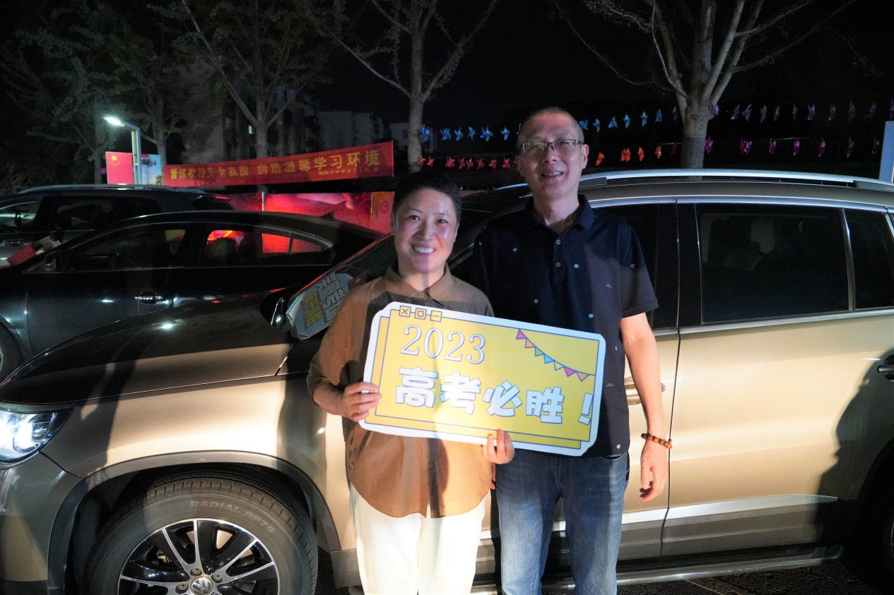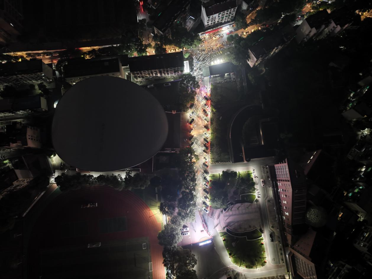 晚上8点36分,高三年级的同学们从教室里有序走出,直面校园里的“闪亮”场面。36辆汽车成羽毛形状排列,大灯璀璨,聚焦前路,为学生们照亮锦绣前程!
