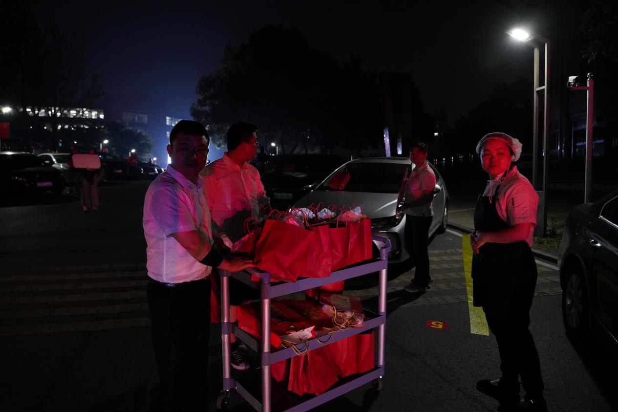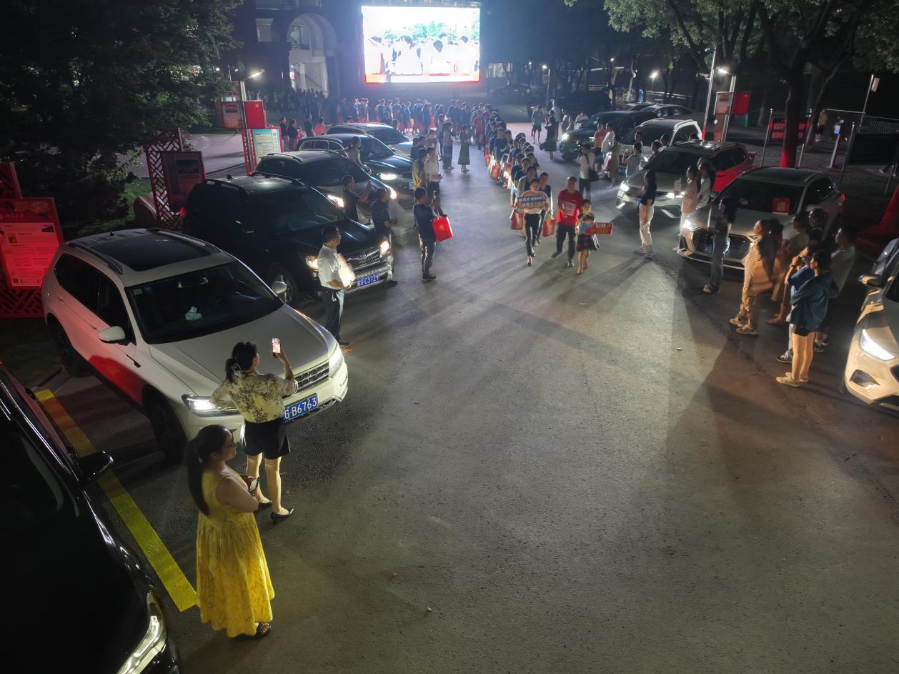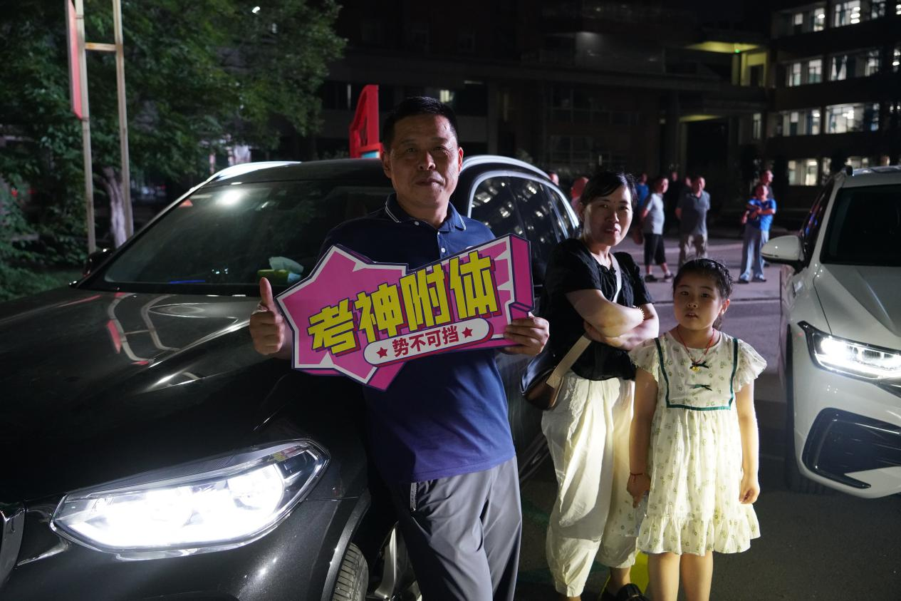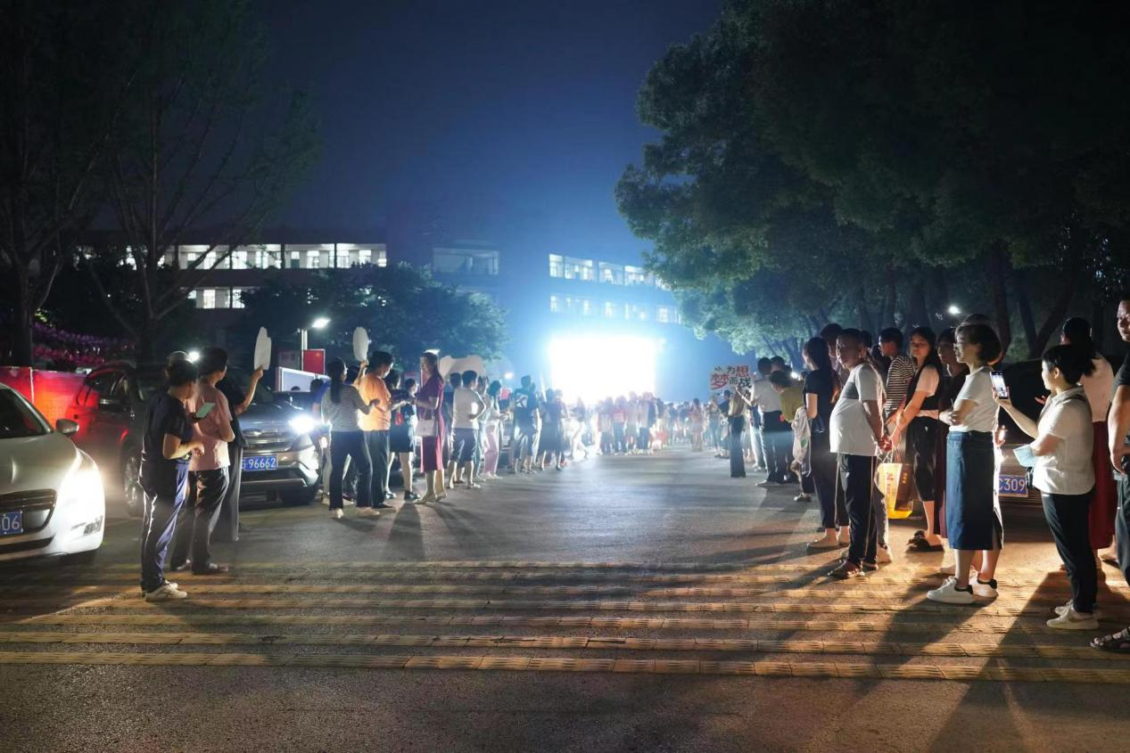 晚上8点36分,高三年级的同学们从教室里有序走出,直面校园里的“闪亮”场面。36辆汽车成羽毛形状排列,大灯璀璨,聚焦前路,为学生们照亮锦绣前程!