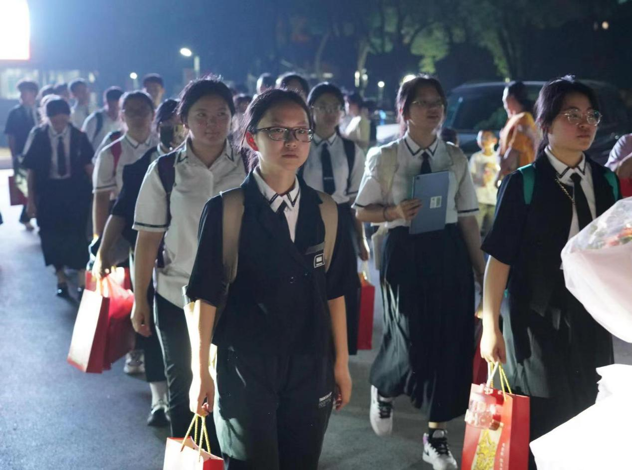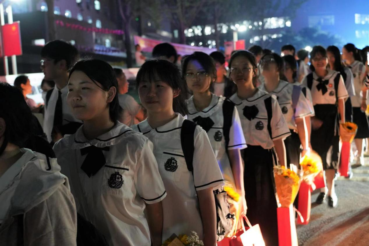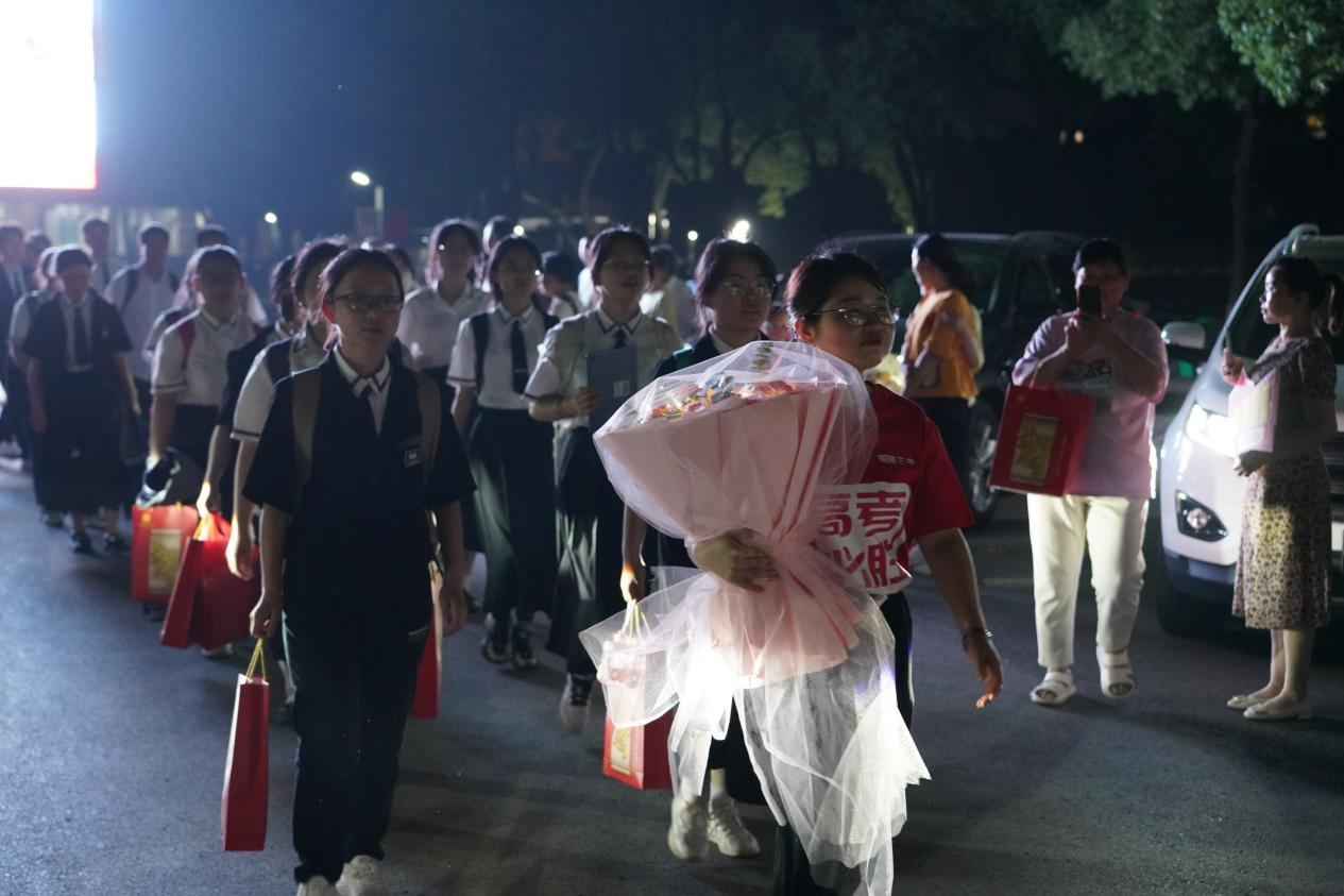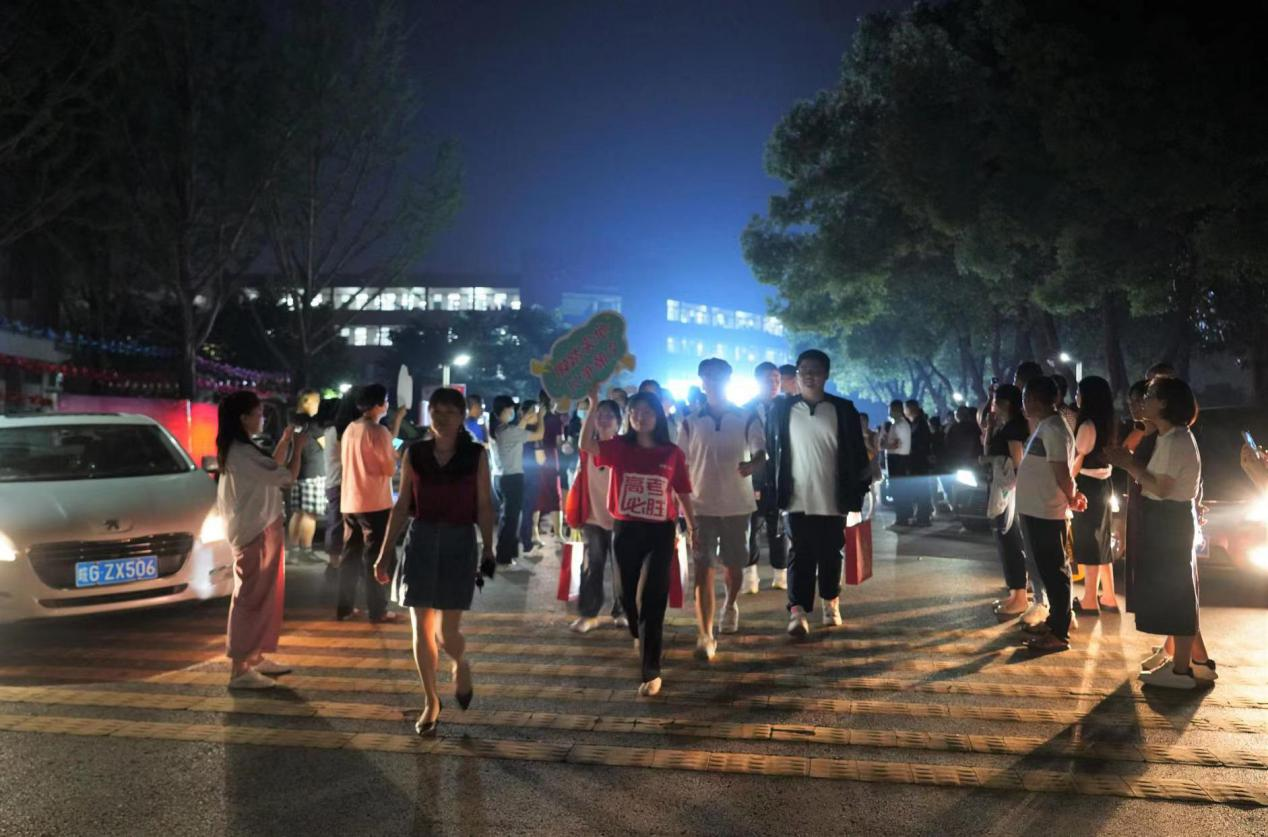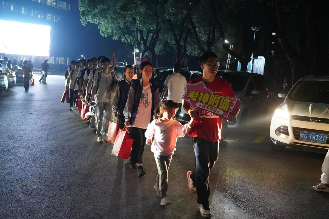 晚上8点26分,全体高三班主任及校领导们带着深深的祝福与期盼,在天行楼前为高三学子们壮行。