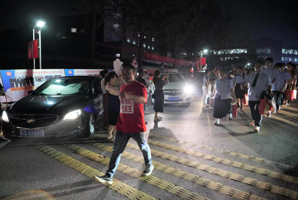 班主任带领各班学子踏上光明大道,同学们挥舞着手臂,向路边大声喊着“加油”的家长和老师致意,信心满满,微笑面对前程。十年磨剑今朝出,誓将蟾宫尽折桂!