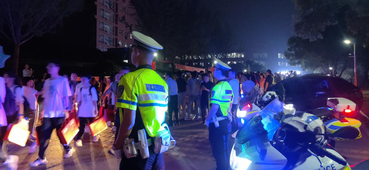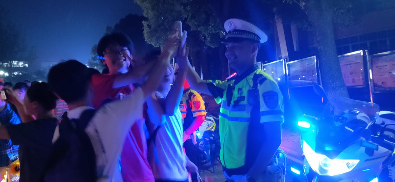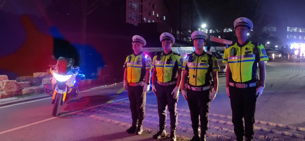 校门内,铜都铁骑,两排车灯闪耀,一如既往的守护着学子们的平安,看着少年们奔向未来。