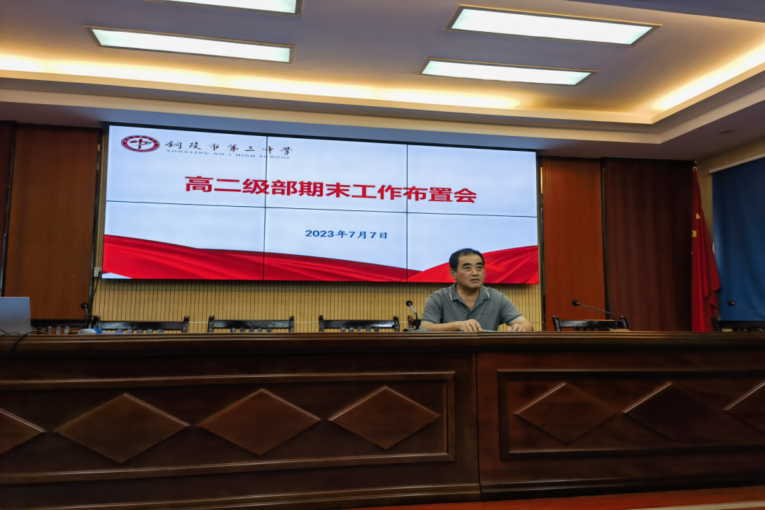 为统筹安排期末和暑期各项工作,7月7日下午,高二级部在躬行楼五楼第二会议室召开2022-2023学年第二学期期末工作布置会,校党委副书记、级部分管校长张国荣、级部主任王俊朝、教学部长方进、德育部长朱海波、全体班主任和备课组长参会,方进主持会议。会议分四项议程。
