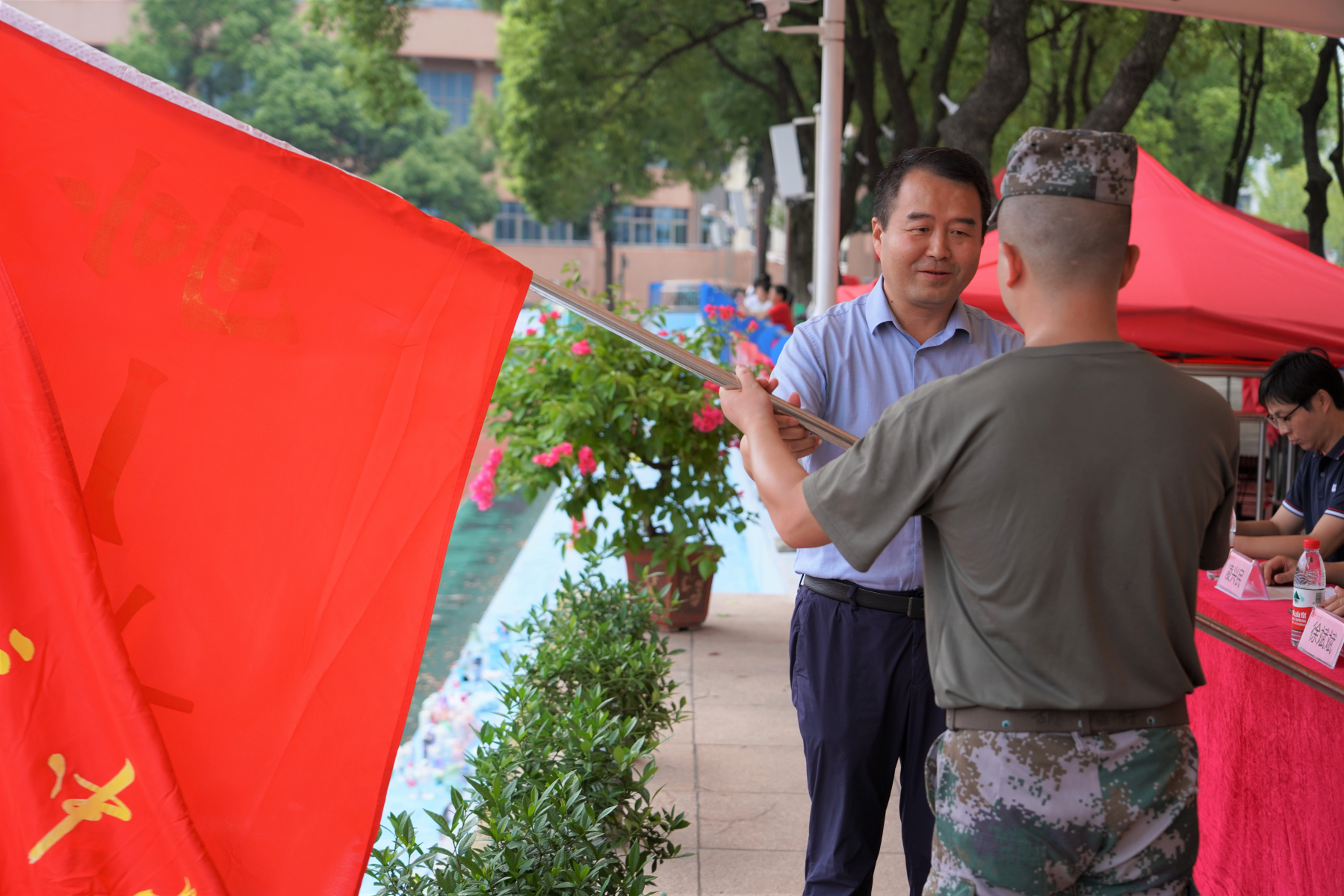伴随着雄壮的义勇军进行曲的奏起,高一年级新生国防教育活动仪式拉开了帷幕。凌兴民了宣读军训计划,校领导和郊区人武部领导分别给各连队(班级)授旗。