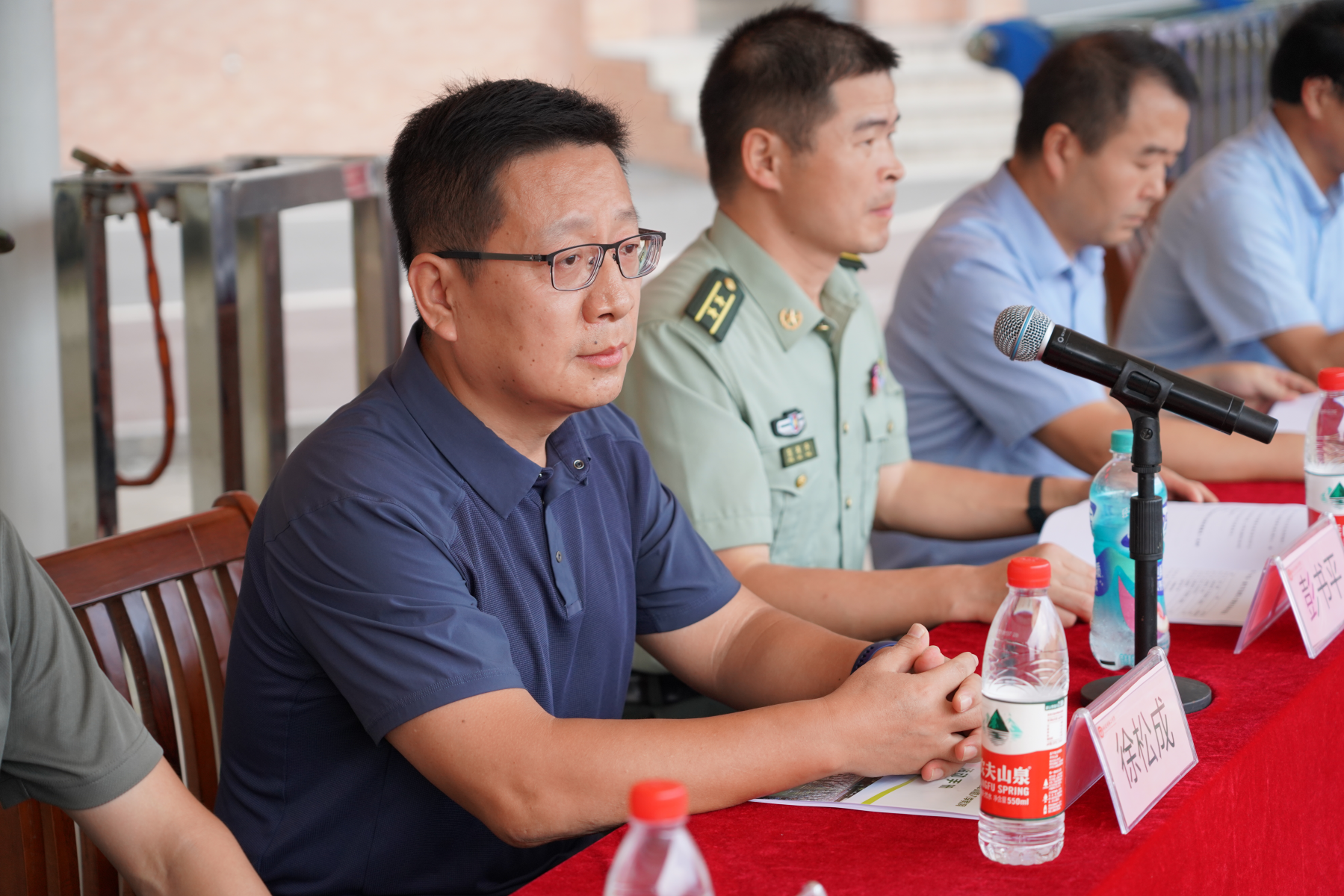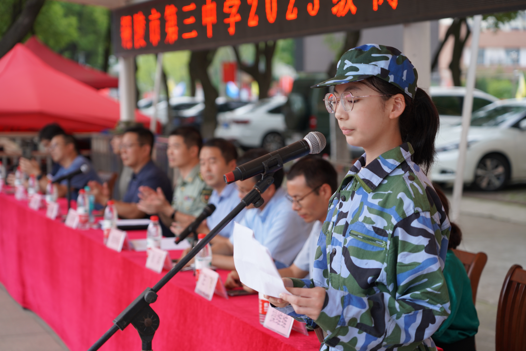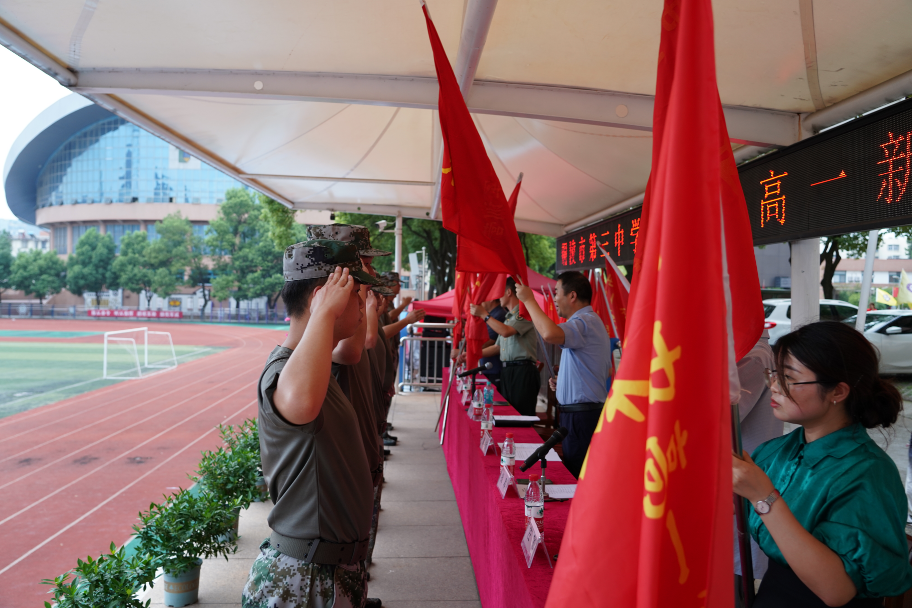 8月21日下午,铜陵三中高一新生国防教育活动正式开启。铜陵三中党委委员、副校长徐松成,郊区人武部副部长彭书平,铜陵三中党委委员、副校长章学标,郊区人武部军事训练科参谋徐斌斌,铜陵三中教务处主任、高一年级部主任钱军等出席动员启动大会,保卫科负责人凌兴民主持启动仪式。