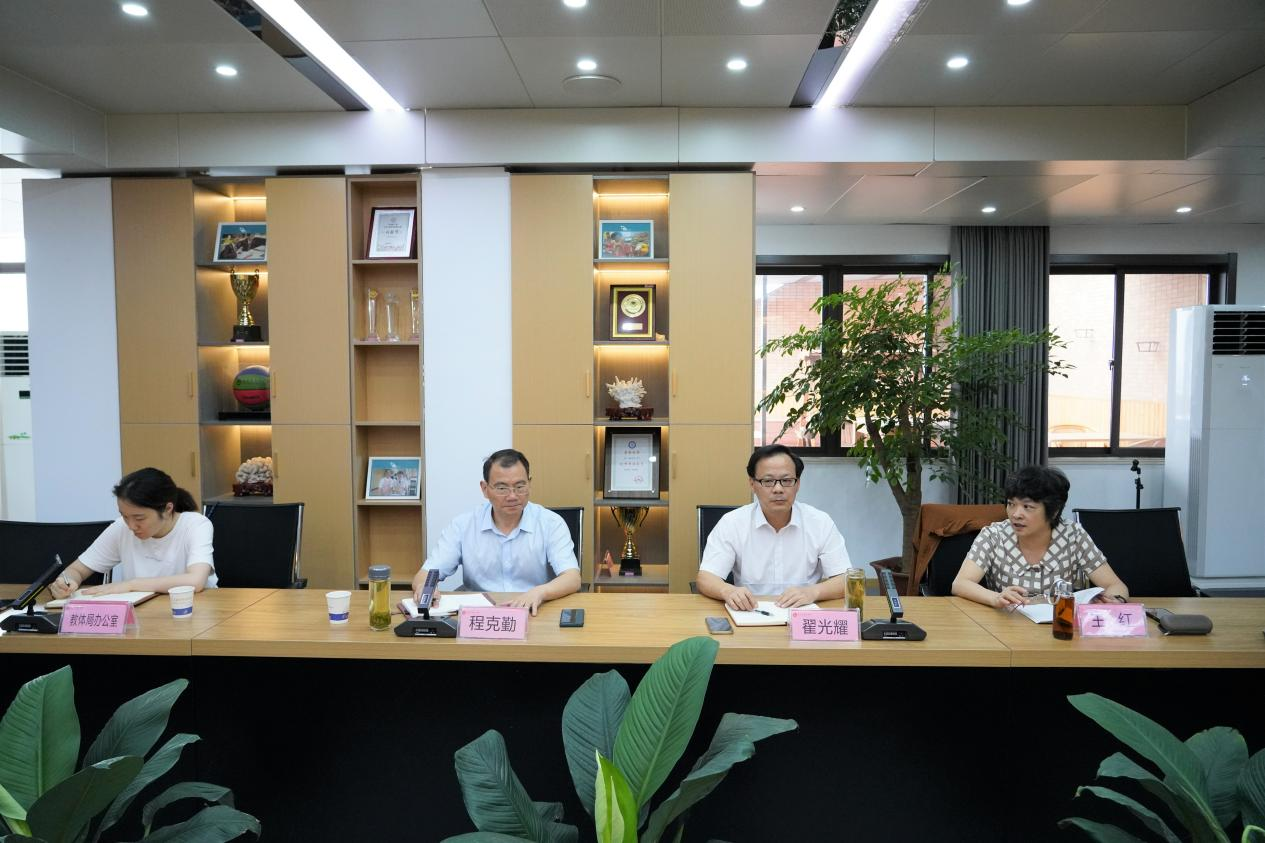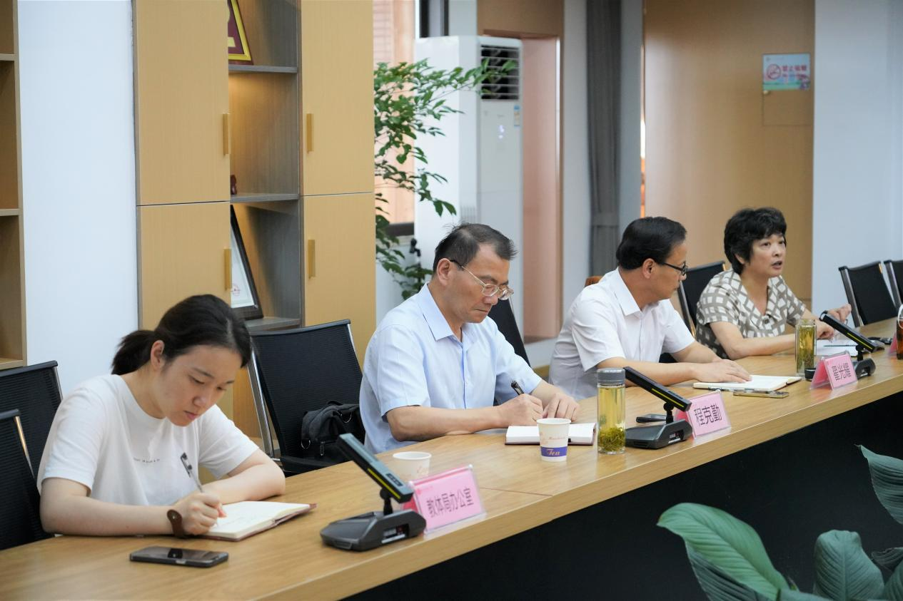 830日,市政府办公室(市外事办)副主任翟光耀、教体局二级调研员程克勤、教体局四级调研员王红、教体局办公室杜珊珊一行来我校调研外事工作,并召开座谈会。校党委副书记、副校长王合进,副书记张国荣,党委委员、副校长徐松成,党委委员、副校长章学标,教务处主任钱军,办公室主任王俊朝,外联科负责人余徐刚等陪同调研或参加相关活动。
