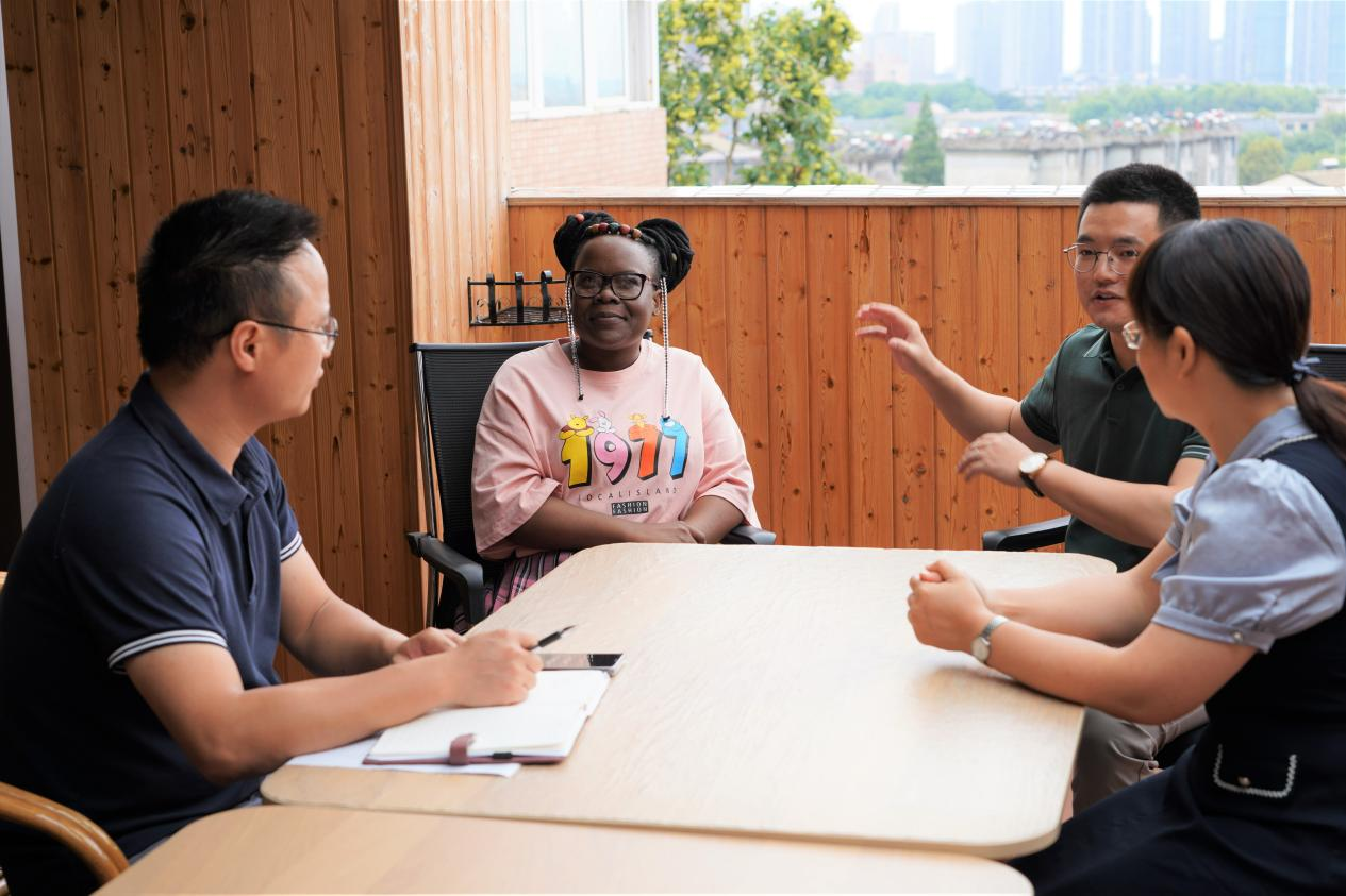 座谈会结束后,市外事办一行同新进的南非(六个英语母语国家)外教赛蜜进行了交流,并举行了简单的欢迎会。