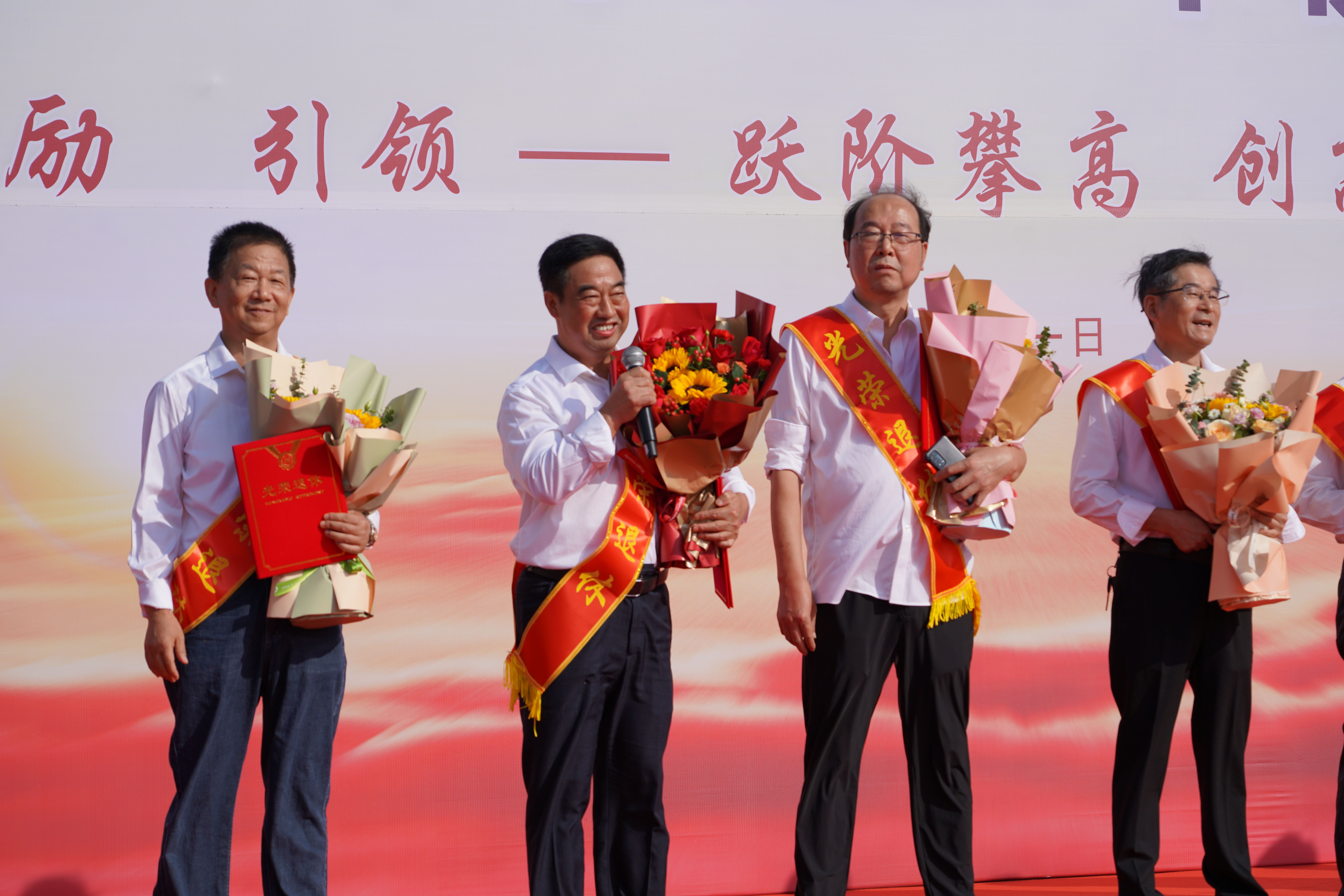 校领导们走上主席台,为2023年退休老教师佩戴绶带,颁发证书。