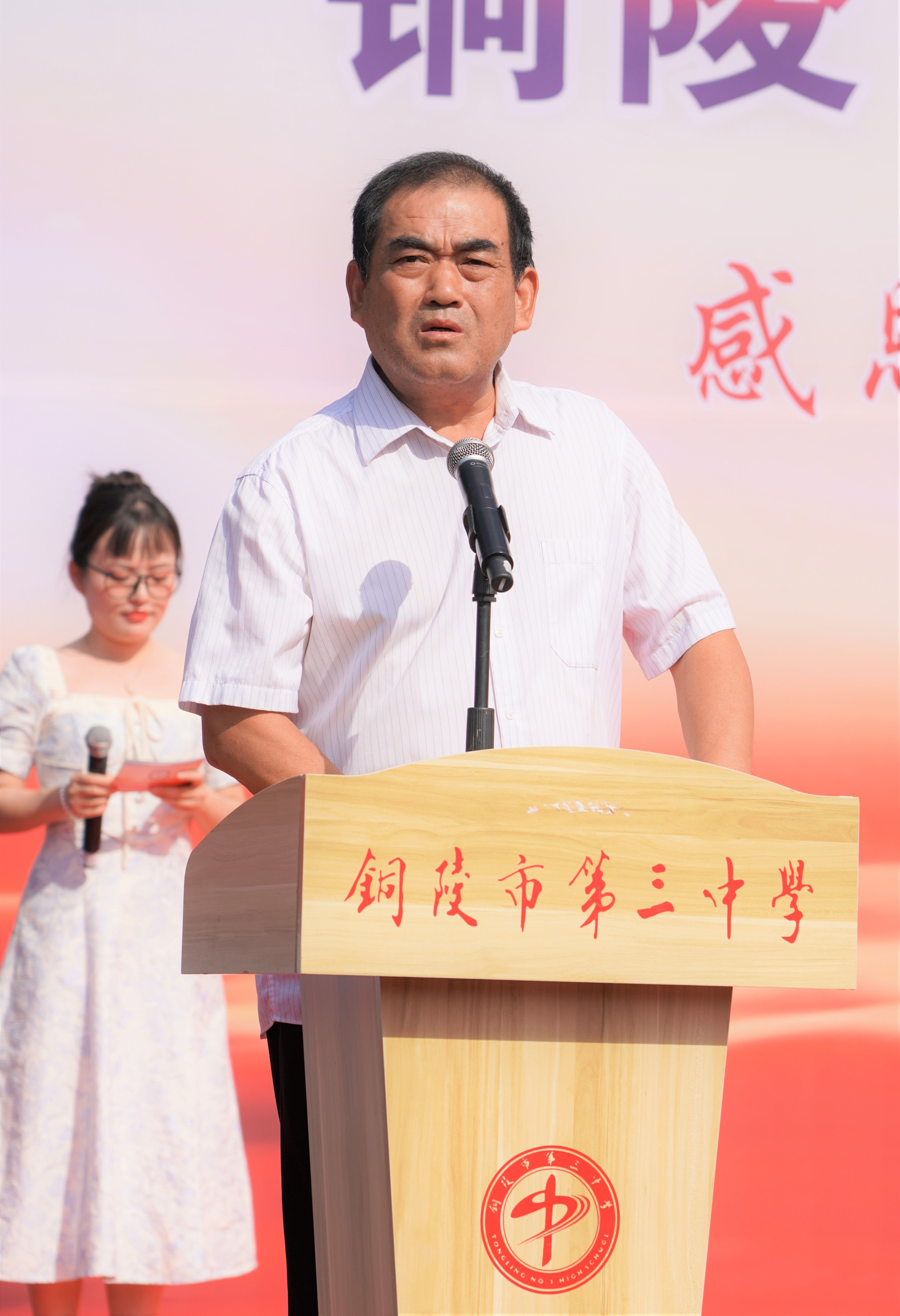退休老教师依次发言,感谢学校的关怀,祝福三中明天更美好,祝福学子们学业进步。
