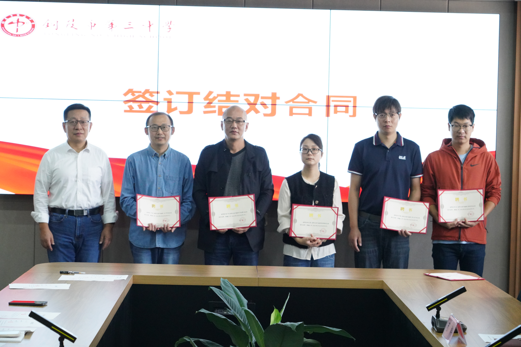 接着五对师徒进行了拜师协议的签字活动,校领导给每位指导教师颁发聘书并合影留念。