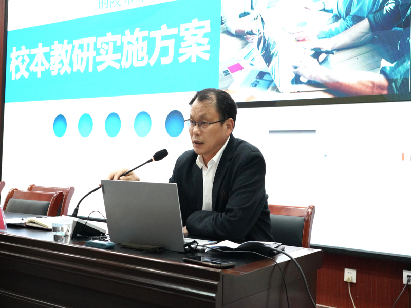 会上,教务处主任、高一年级部主任钱军对《校本教研实施方案》从“为何教研、教研什么、如何教研”等三个方面做了解读。