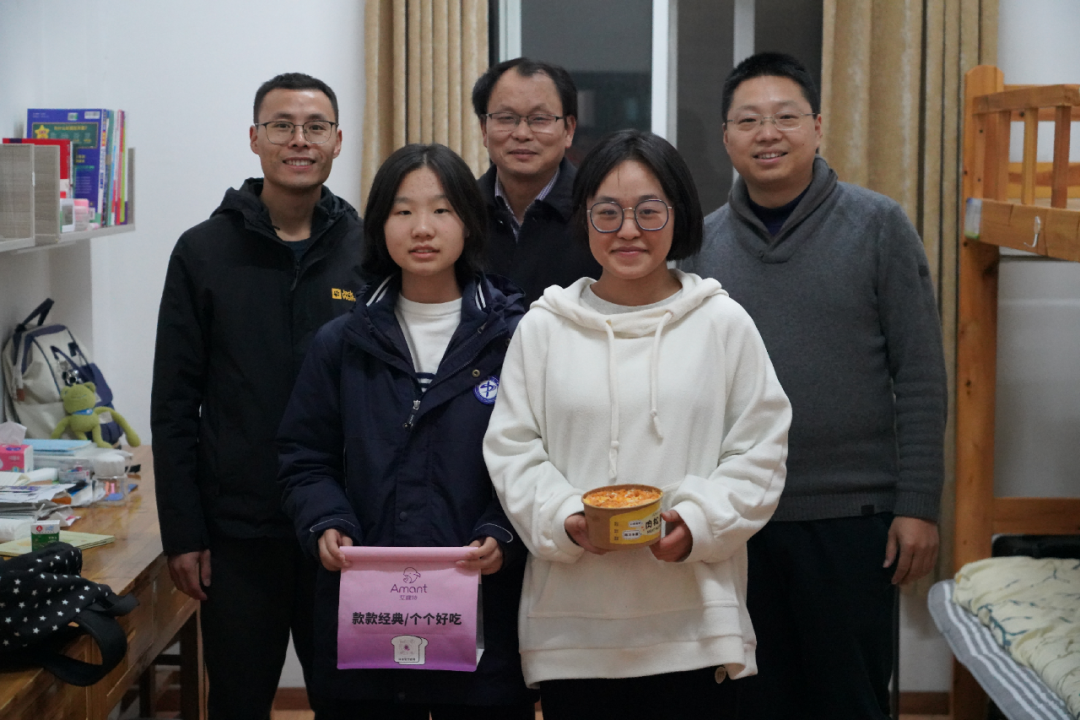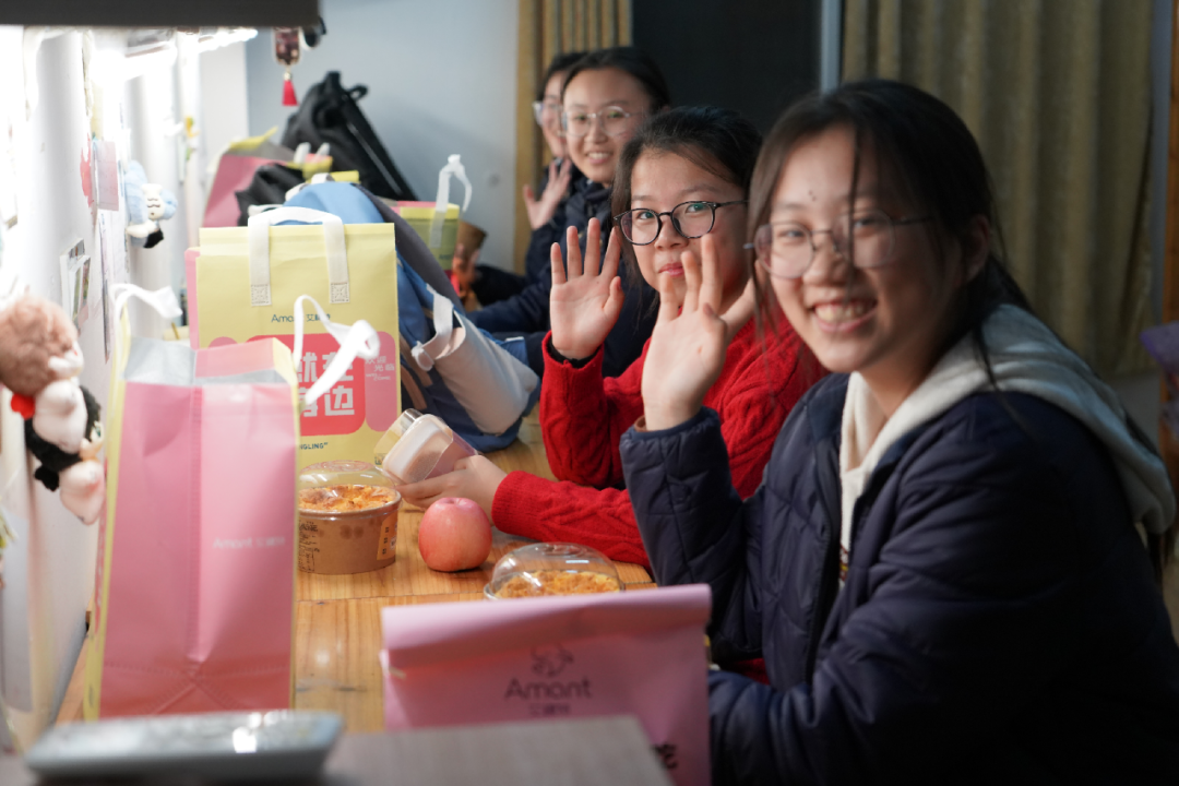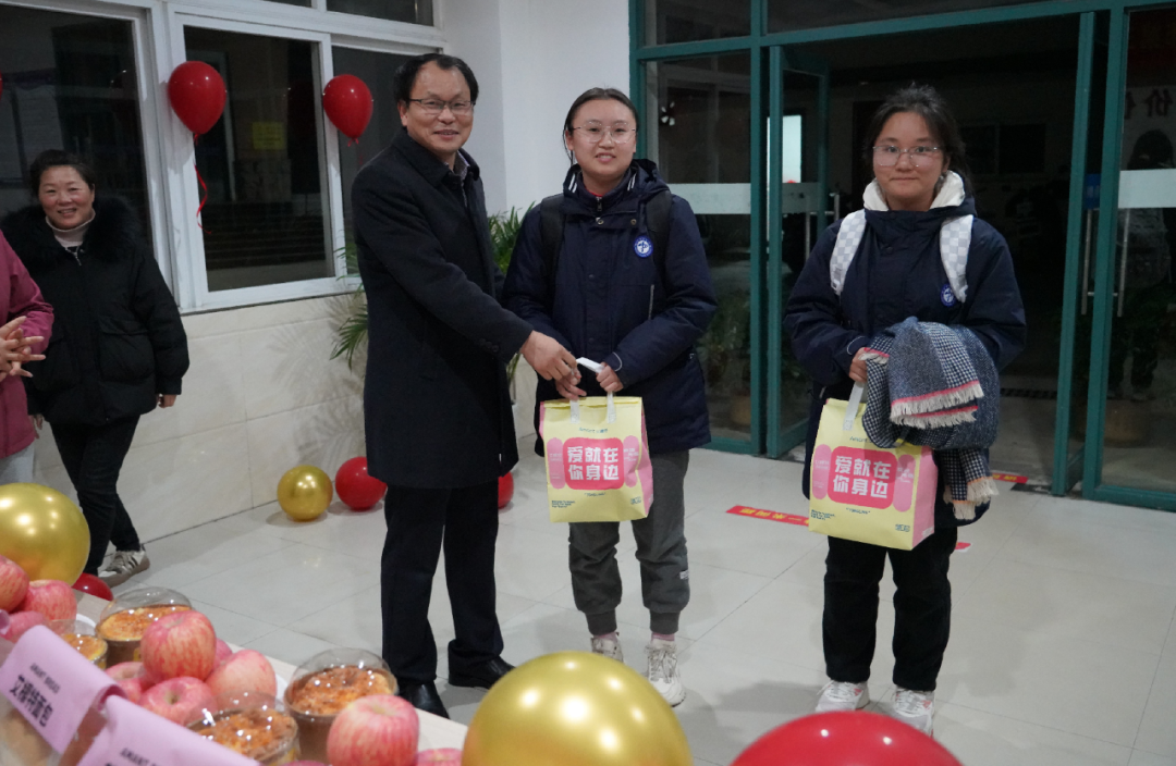 一到宿舍外楼道,住校生们便闻到了阵阵食物的香气。踏上台阶,便看到宿舍大厅的桌子上摆满了为他们精心准备的爱心夜宵。元气满满的祝福语,香甜可口的蛋糕,仪式感满满的活动让同学们惊喜连连。走访慰问中,各位领导老师们与同学们亲切交谈,询问关心他们近期的学习与生活情况。在为同学们送上暖暖爱意的同时,也勉励他们能够珍惜在校学习的美好时光,努力学习知识技能,练就过硬本领,常怀感恩之心,用实际行动回报家庭、学校和社会。领导老师们还贴心地提醒同学们天气寒冷外出多添衣,在注意保暖的同时也要注意预防安全问题,自觉遵守校规校纪,学校也将持续关注同学们在校园生活和学习中遇到的困难,及时提供必要支持。