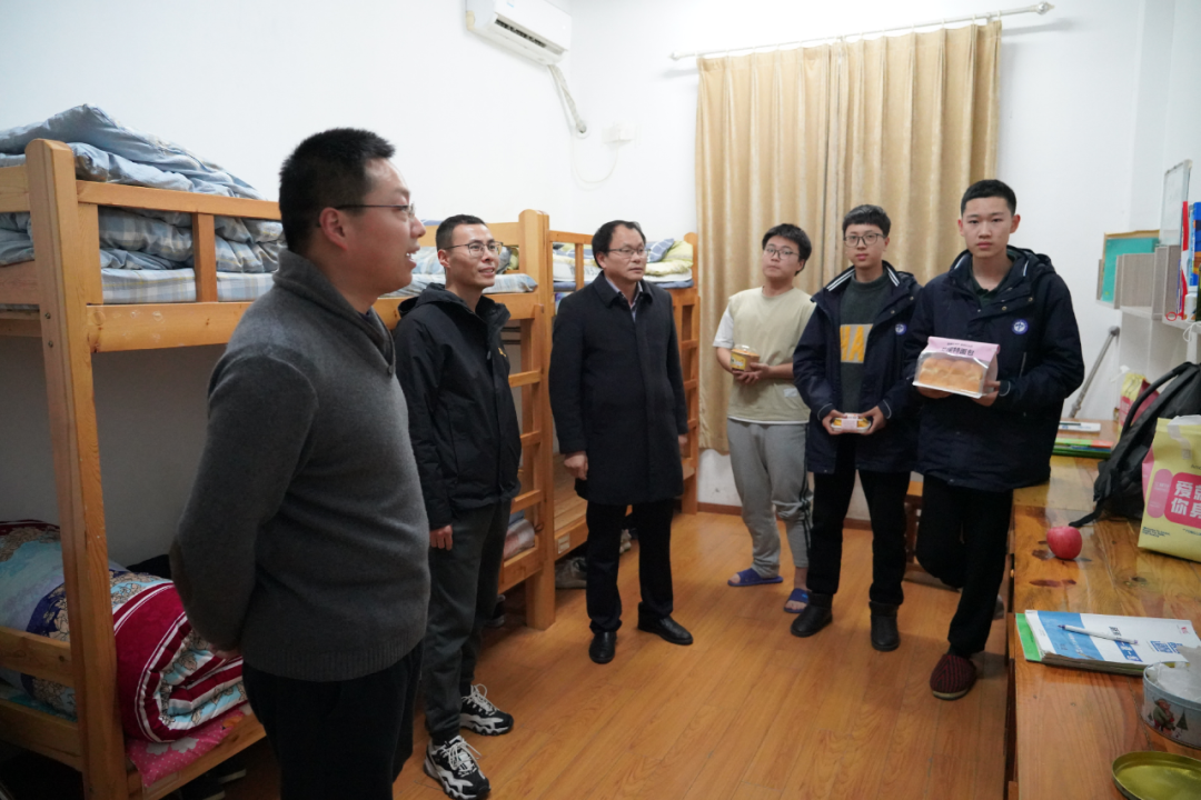 冬日的温暖不只是柔和的阳光,更是流淌在人心底的暖意。为落实三全育人理念,强化住校生对学校的归属感,营造温馨、和谐的住宿生活,12月7日晚,在中国传统节气大雪这天,政教处为住校生们筹备一场“冬天里的一把火”冬季暖心活动,高一年级部主任钱军、高二年级部主任左飞、高三年级部主任王俊朝参加活动。