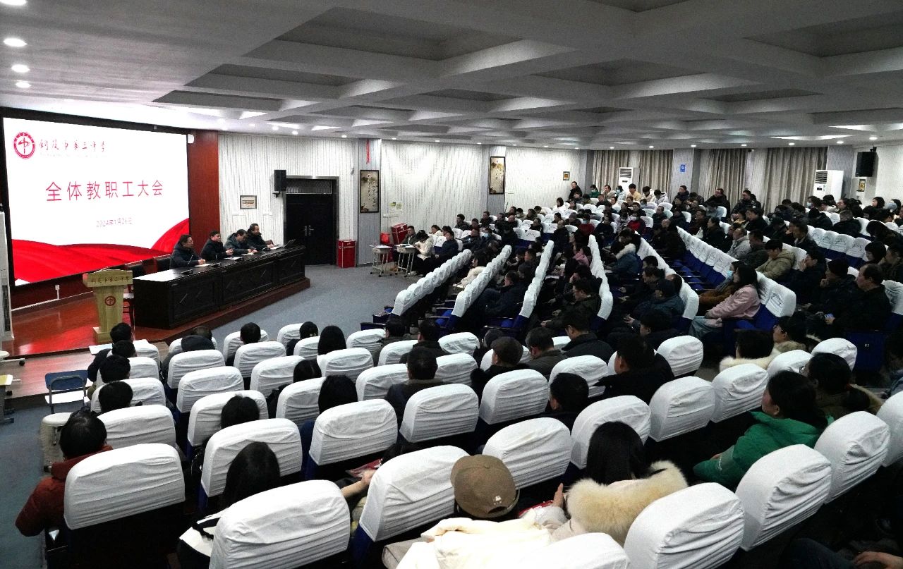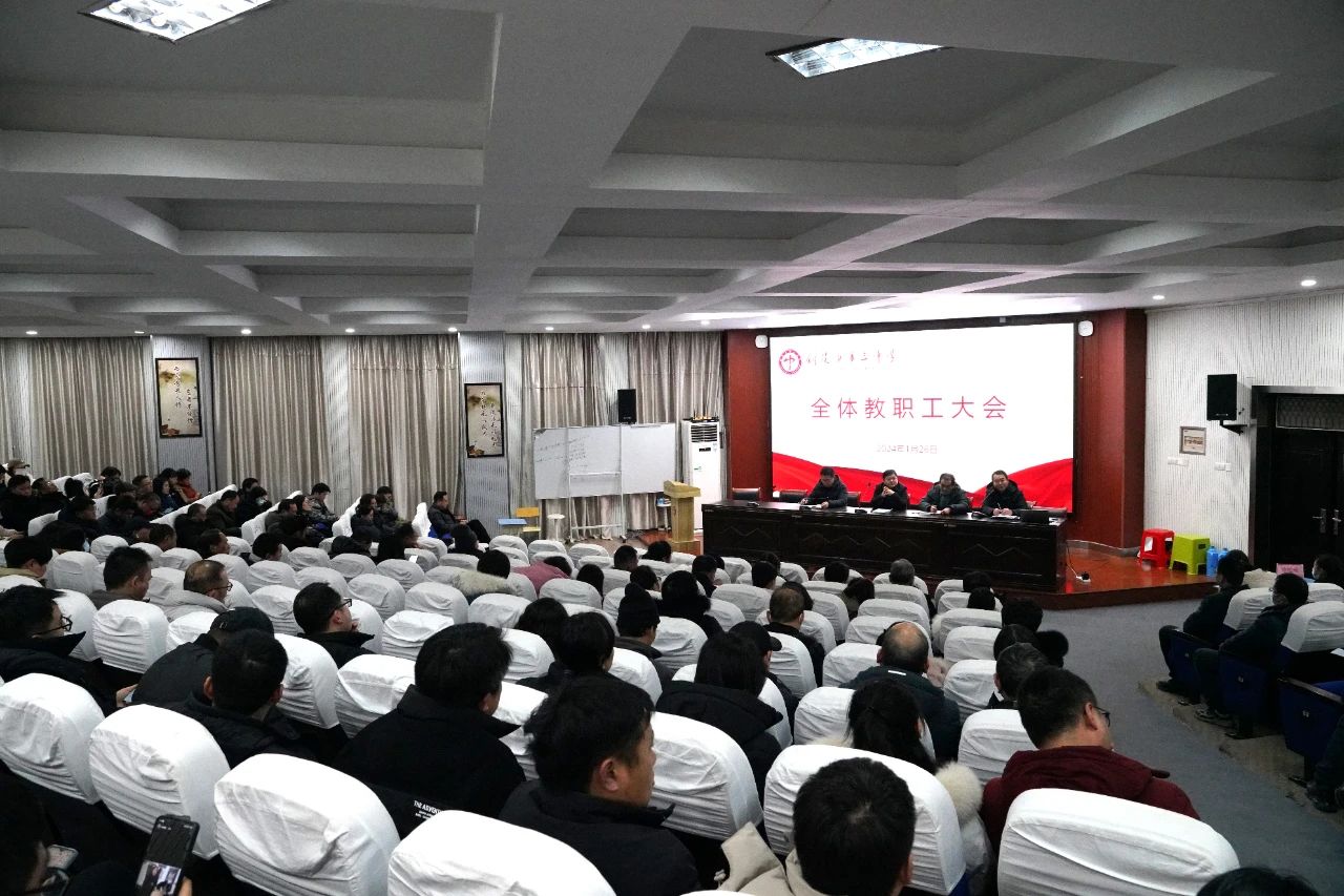 1月26日下午,我校在多功能厅召开全体教职工大会,校党委副书记、副校长王合进,副书记张国荣,党委委员、副校长徐松成,党委委员、副校长章学标出席会议,全体中层干部及教职工约240人参加大会。王合进主持大会。