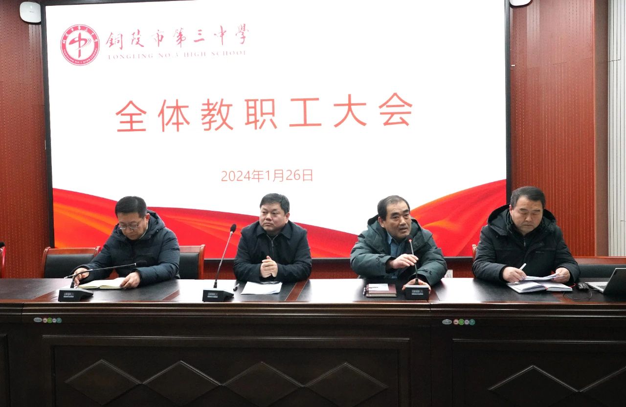大会就近期工作进行了总结,对即将到来的寒假前工作进行了部署。章学标、徐松成、张国荣分别对后勤管理、假期安全、期末考试、考风考纪、寒假安排、岗位晋升、教职工考核、党建办、工会慰问等工作作了说明、传达和提醒。
