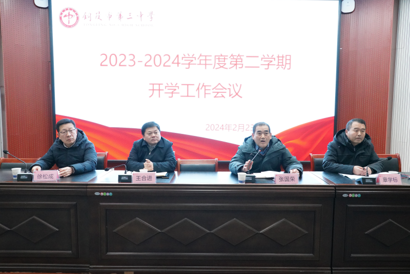 2月23日上午,室外寒冰冷凝,铜陵三中多功能厅一派暖意融融,时隔20多天的假期调休,全体教职工再次欢聚于此,举行2023——2024学年度第二学期开学工作大会,校党委副书记、副校长王合进,党委副书记张国荣、党委委员、副校长徐松成,党委委员、副校长章学标出席大会。张国荣主持大会。