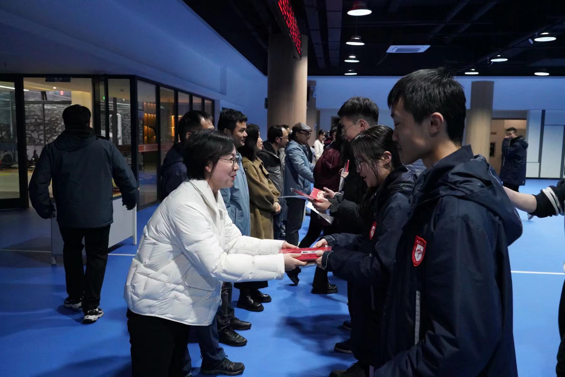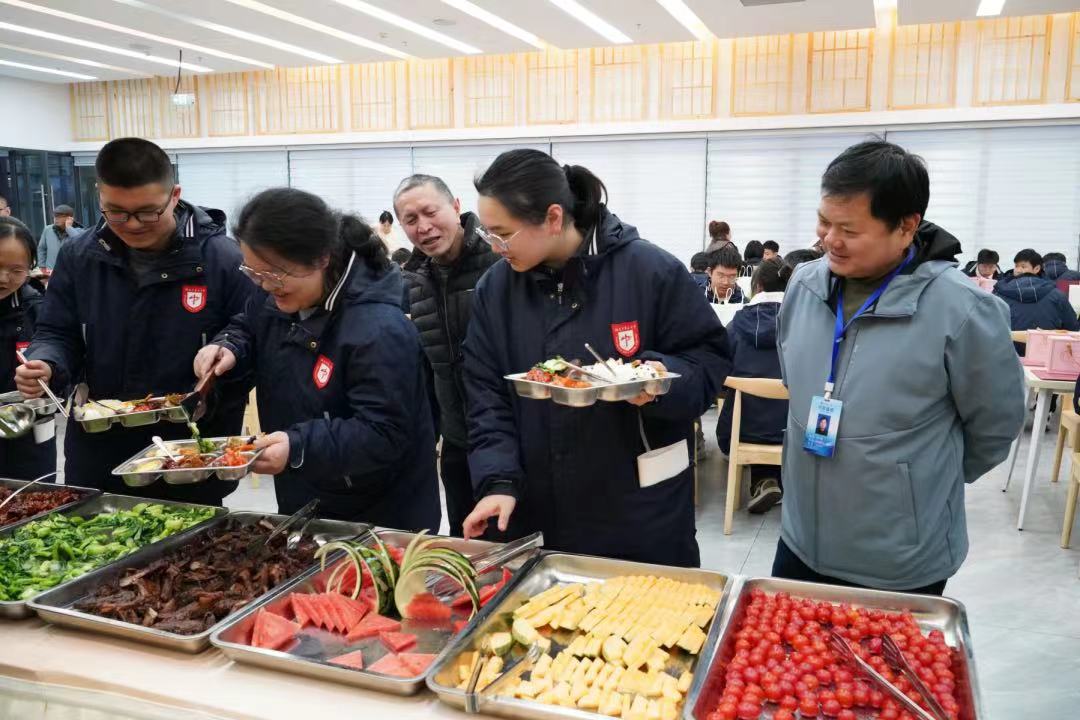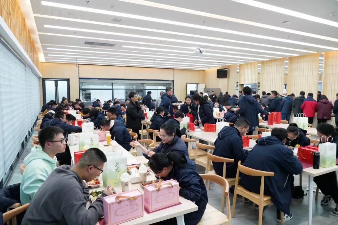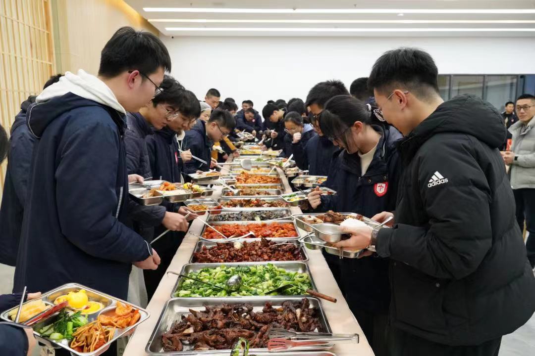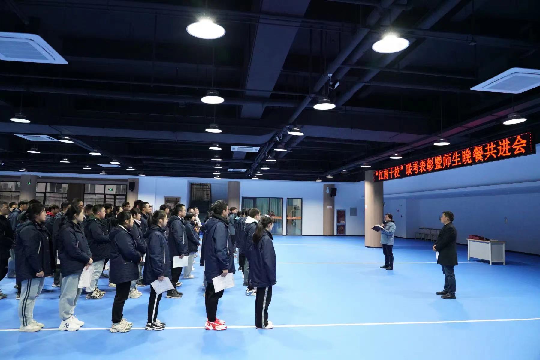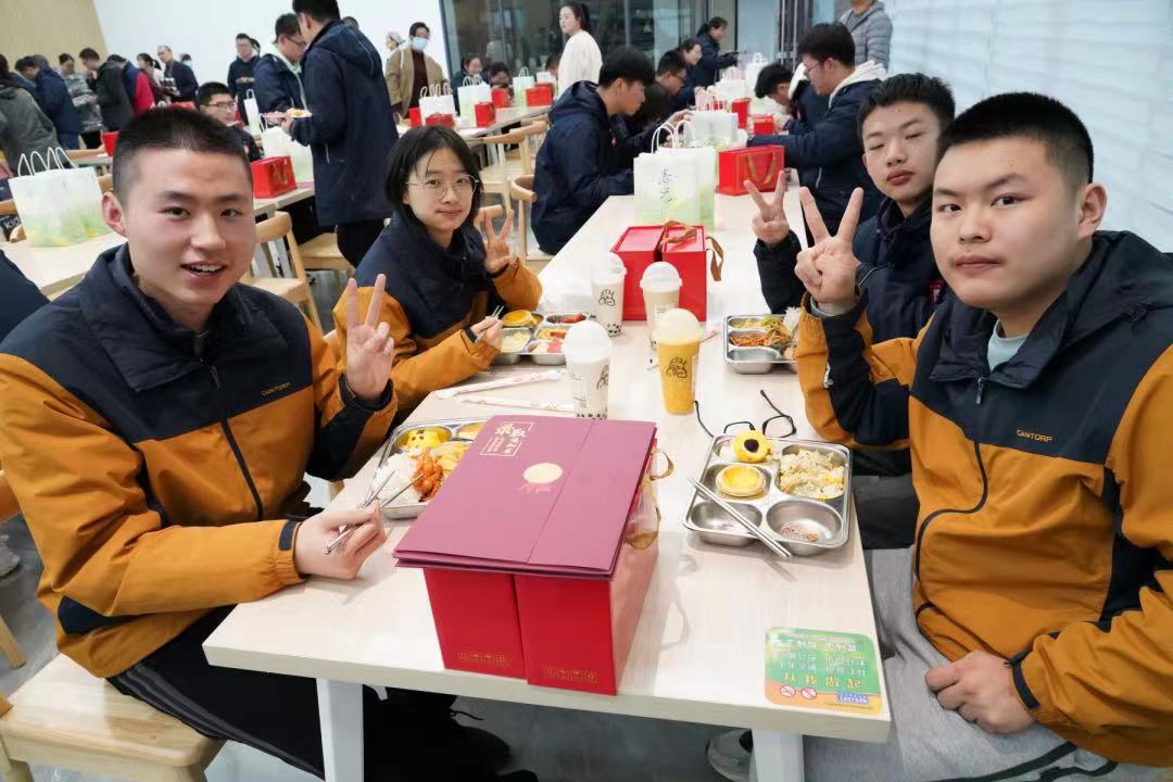表彰会结束后,在场的师生进入二食堂,共享晚餐。同学们和全体领导、班主任老师像一家人一样围坐在一起,其乐融融,场面和谐温馨。大家和校长、老师们聊一聊自己的目标理想,听一听校长、老师们的宝贵教导。享受各种风味美食。在座的优秀学子们还获得了学校赠予的暖心伴手礼。
