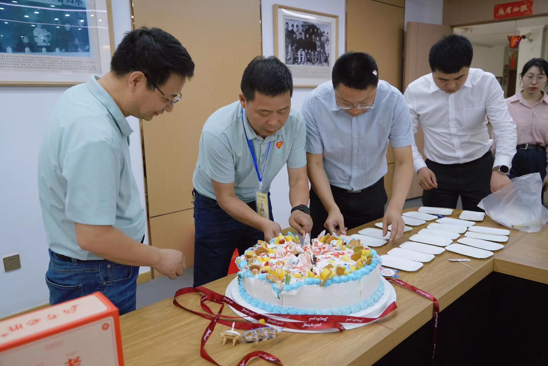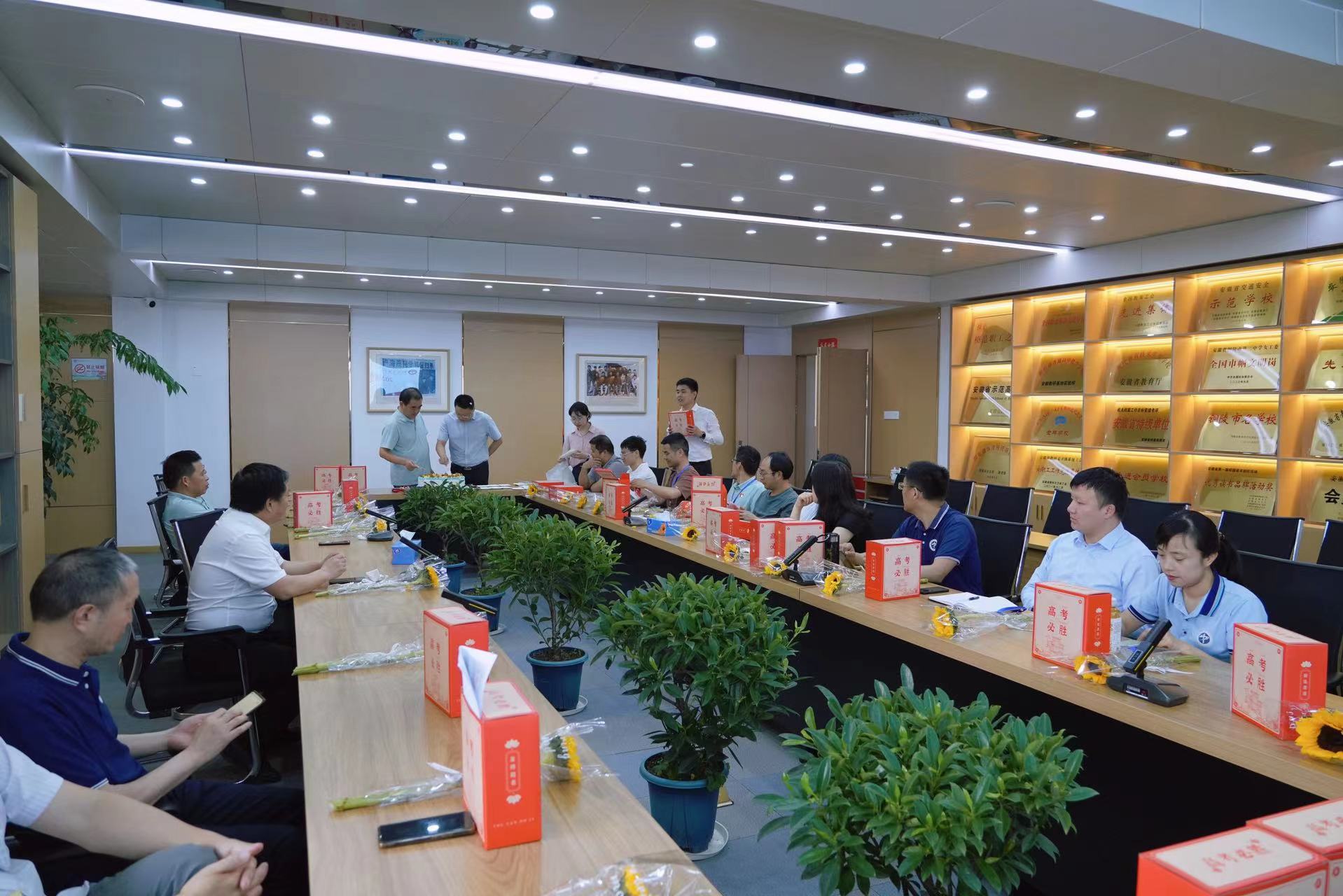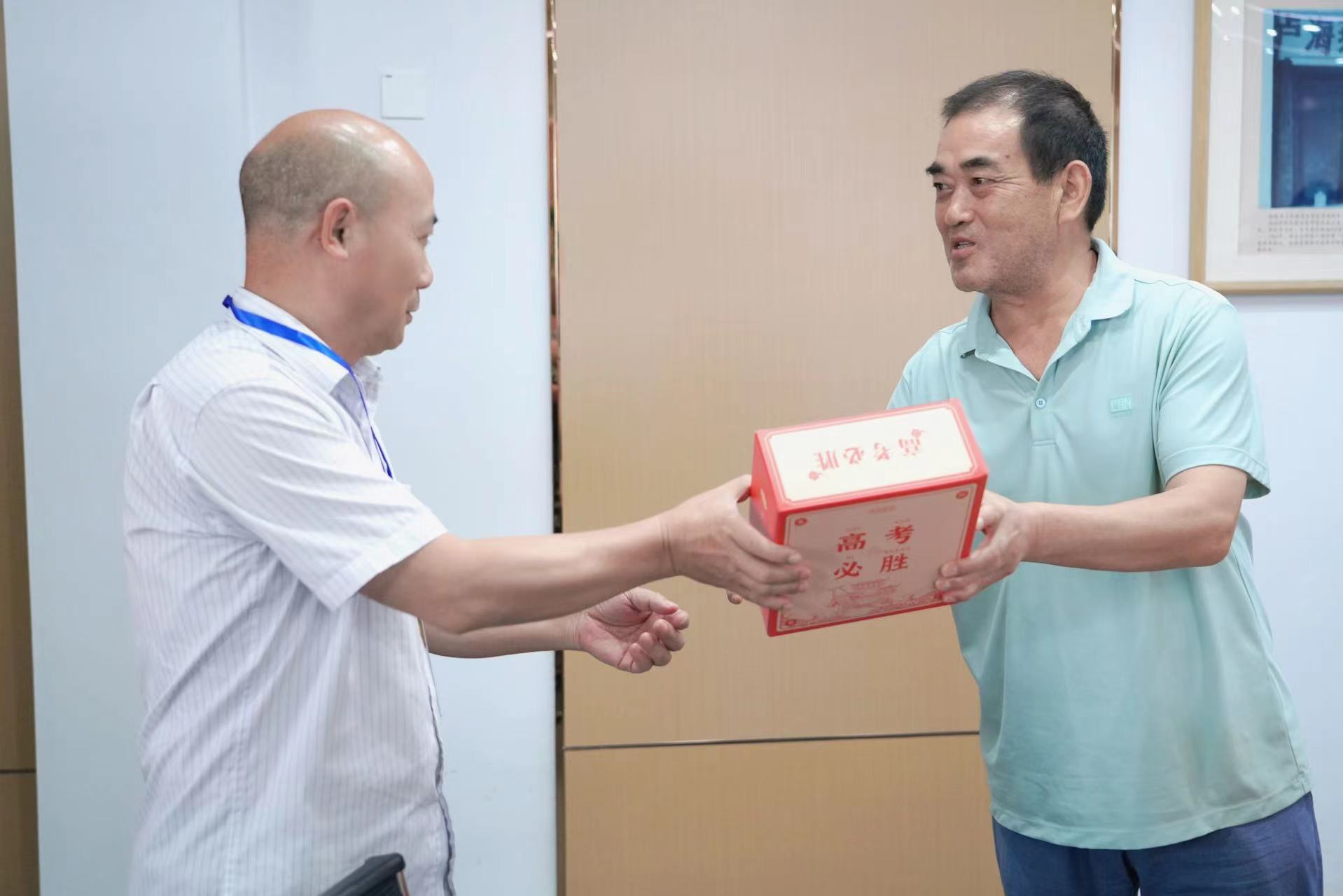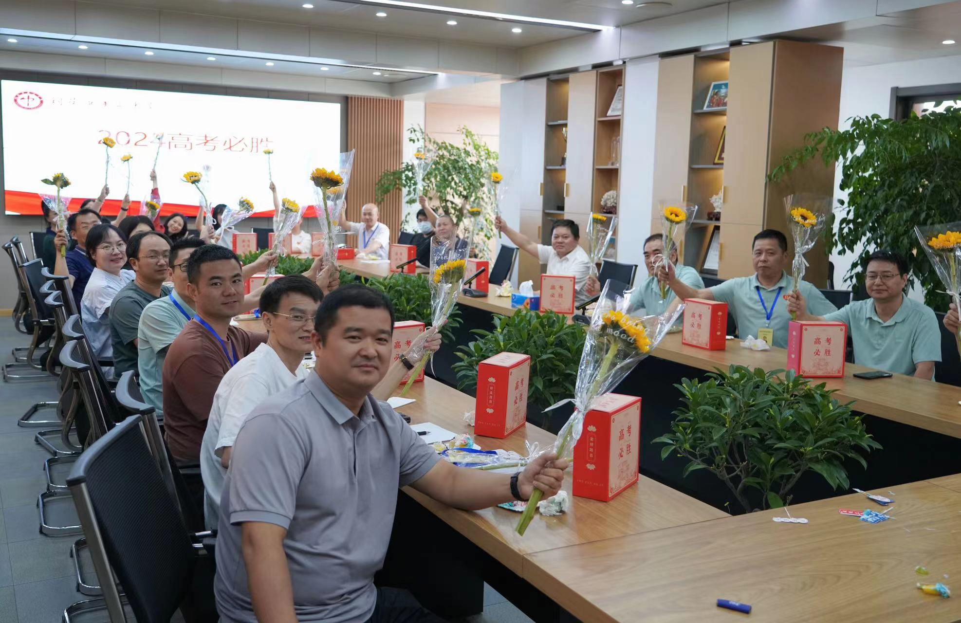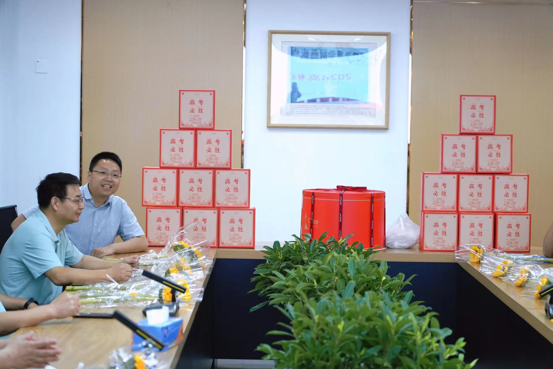 6月4日上午8点30分,校党委副书记、副校长王合进,党委副书记张国荣为即将把学子们送入高考考场的高三班主任们切下象征胜利与甜蜜的蛋糕,并向每位班主任送上了寓意阳光和希望的向日葵花束,以及满满的祝福。