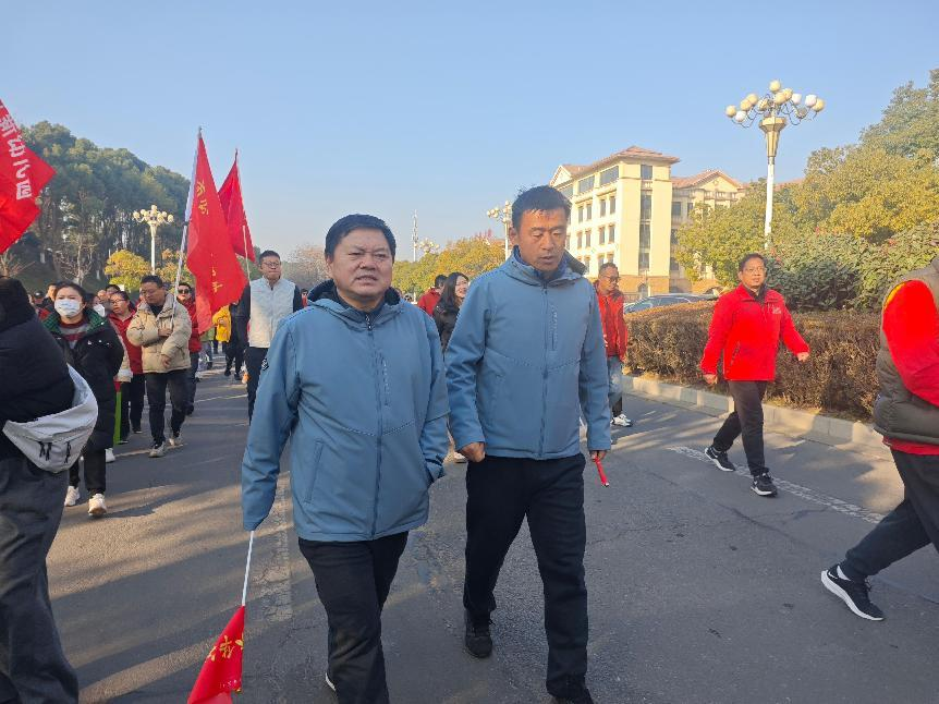 2025年1月1日上午,铜陵市第59届元旦健步走暨2025年迎春长跑在铜文化园广场鸣枪起跑。市委副书记、市长孔涛为活动授旗,市教体局党委书记、局长杨贤招接旗。在学校工会精心组织下,我校100余名教职工积极报名,踊跃参与。